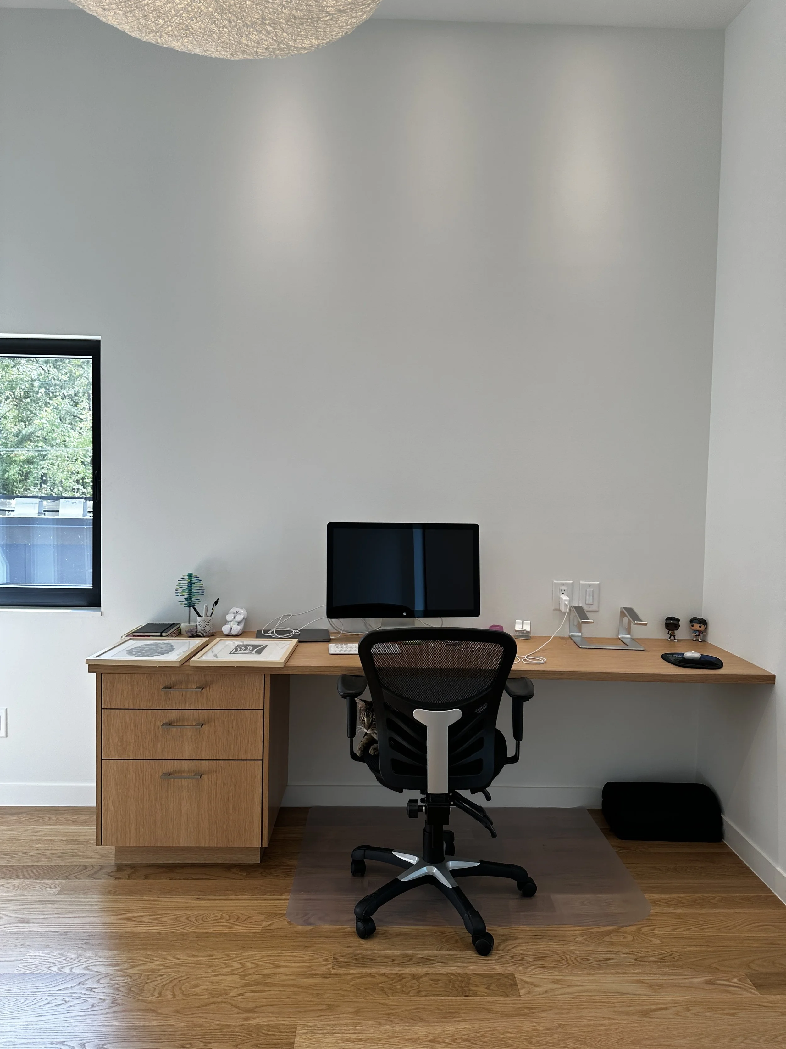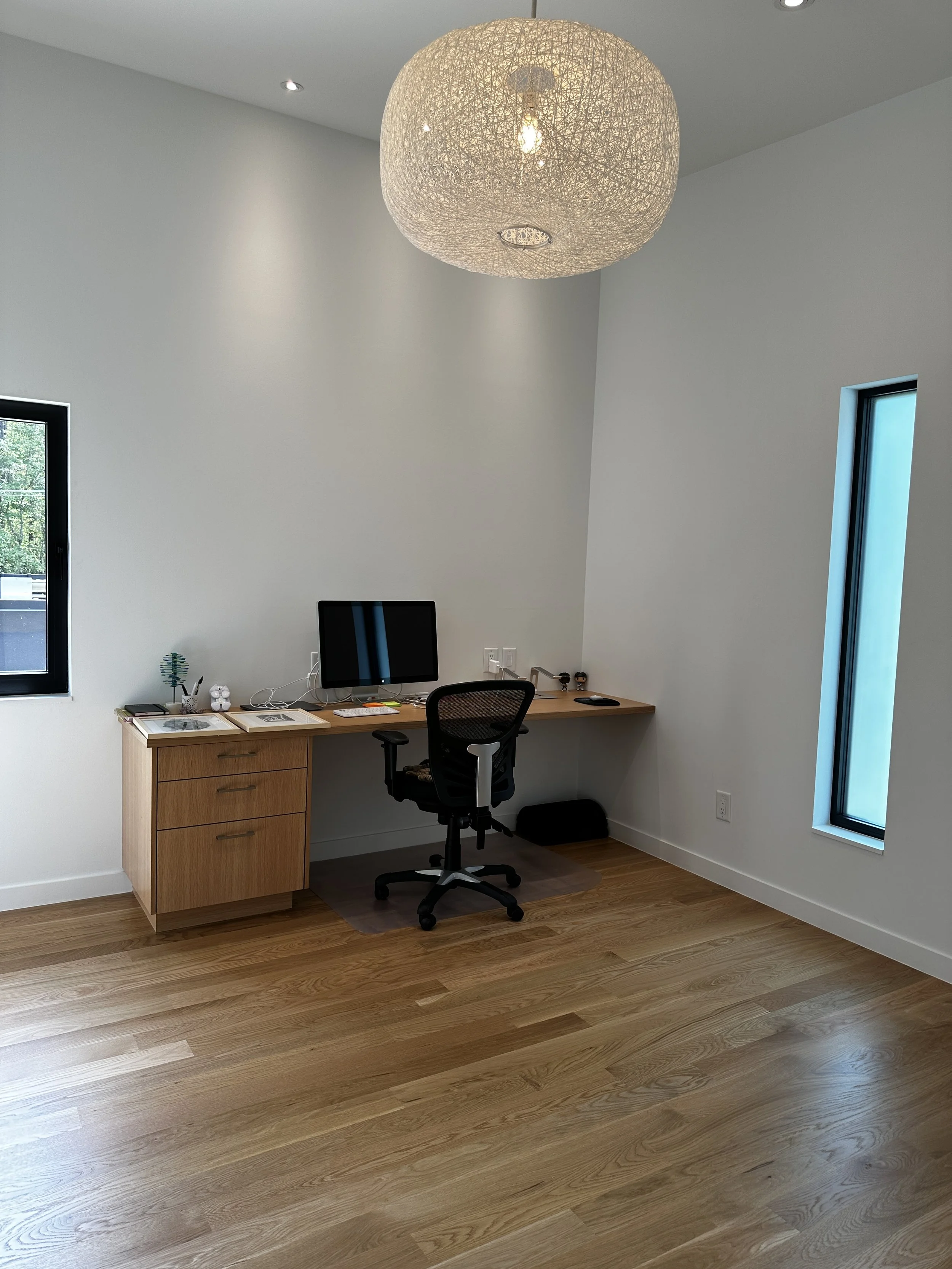 There’s always a bit of added excitement when we get to work with returning clients—especially when they’ve built their own modern dream house and want us to help make it feel like home. One of the spaces we tackled as part of the project was this light and airy home office.